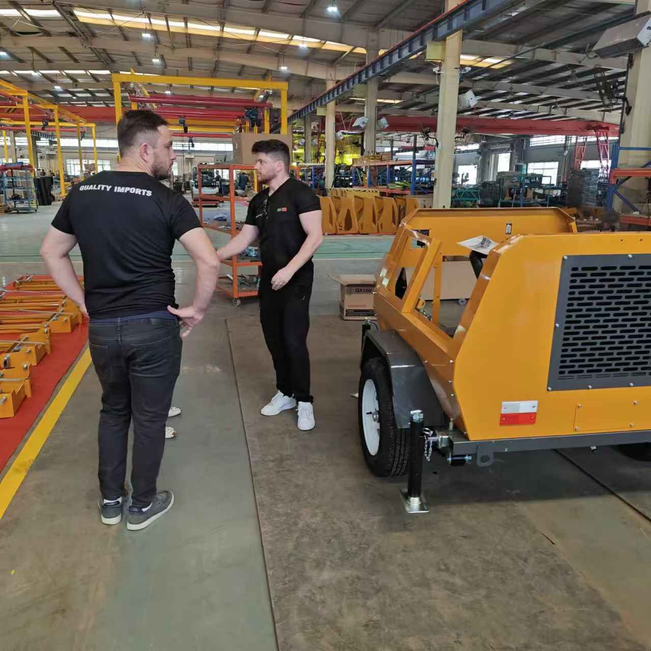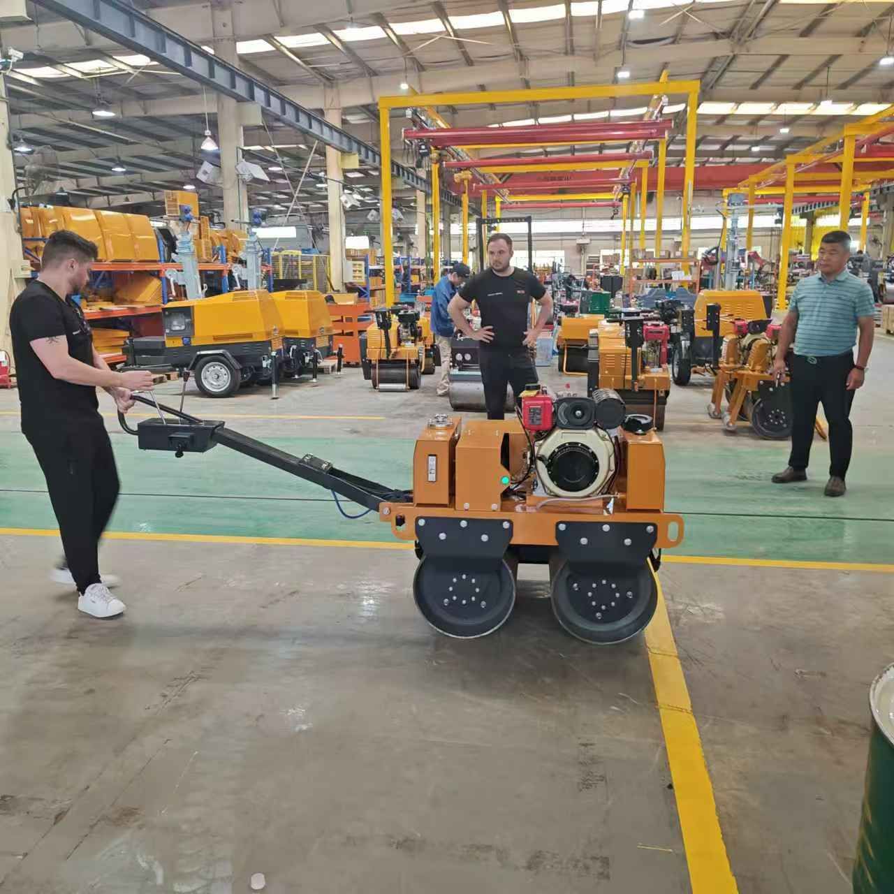 某國外客戶來我廠參觀考察,在工作人員的陪同下,參觀了生產車間與產品展廳,對我廠生產的小型壓路機、移動照明車、平板夯等產品贊不絕口,詳細向業務人員了解各個型號的配置與參數,達成合作意向